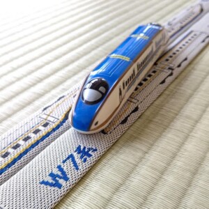 なんと、当店オリジナル畳縁の北陸新幹線w7系(JR西日本商品許諾済)や山代温泉のゆるキャラ「すぱクロくん」 あいうえおの郷オリジナル柄からもお選びいただけます!